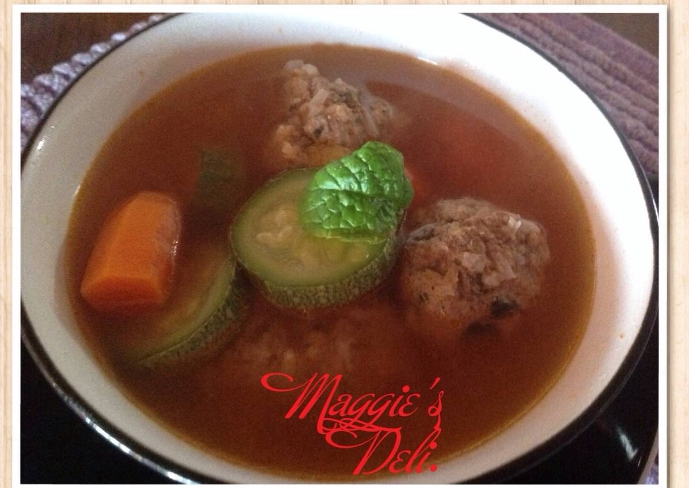 Albóndigas mexicanas de carne mixta, cebolla, arroz, huevo y galleta molida, se cuecen en una salsa de jitomates con ajo y cebolla, zanahoria y calabacín.