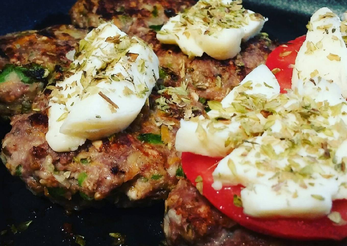 - Colocar encima una rodaja de tomate, queso cremoso y un toque de or茅gano.