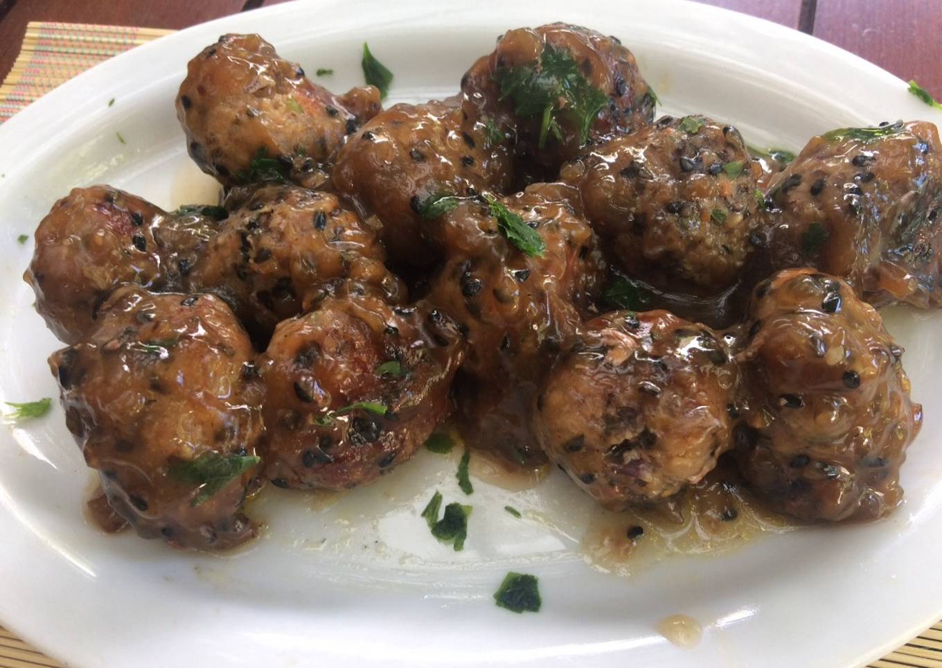 Cuando compro carne molida, me hago de una buena cantidad, de modo que pueda preparar y dejar en el freezer: albóndigas, hamburguesas, relleno para empanadas y para pastel de carne. Luego, solo tengo que sacar del freezer con tiempo y añadir algo rápido. En este caso, una salsa agridulce que vino muy bien a estas albondiguillas de cerdo, ideales para un copetín o una entrada divertida. #CocinaRápidayfácil