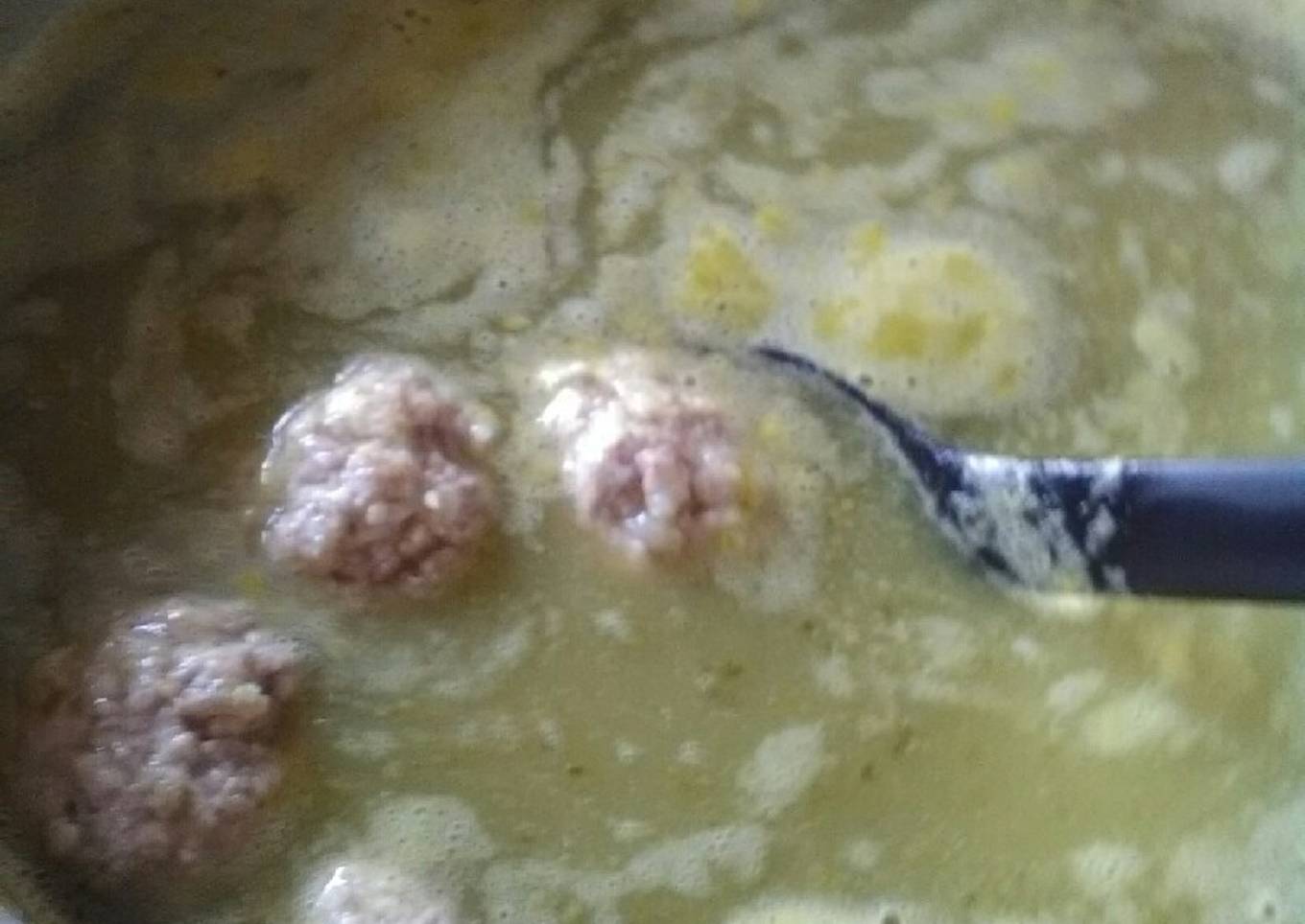 - Sazonar el molito en una cacerola ya estando licuado y colado, cuando comience a hervir soltar las bolitas de carne y añadir agua, cuando la carne ya está blanca dejar hervir 5 min más